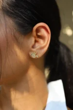 Cravejado com 30 zircônias em cada peça, este brinco irradia um brilho deslumbrante, refletindo luz e espiritualidade.